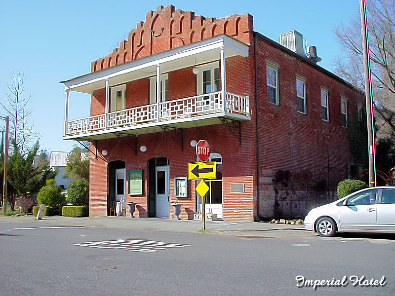 The Imperial Hotel was originally meant to be a mercantile store. When the fire of 1878 destroyed a wooden hotel on the site, B. Sanguinetti decided to build a brick store on the lot. At some point during the construction he changed his plans and in 1879 an impressive, two-story brick hotel was finished. The following year a two-story frame addition was added to the rear of the building, which was removed years later. The hotel was first known as the "Italian Hotel", becoming the Imperial at some later date.