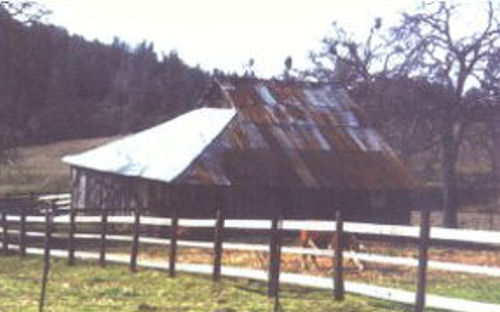 The old barn near the house shows its age in the rusty roof. The younger barn is across the road.
